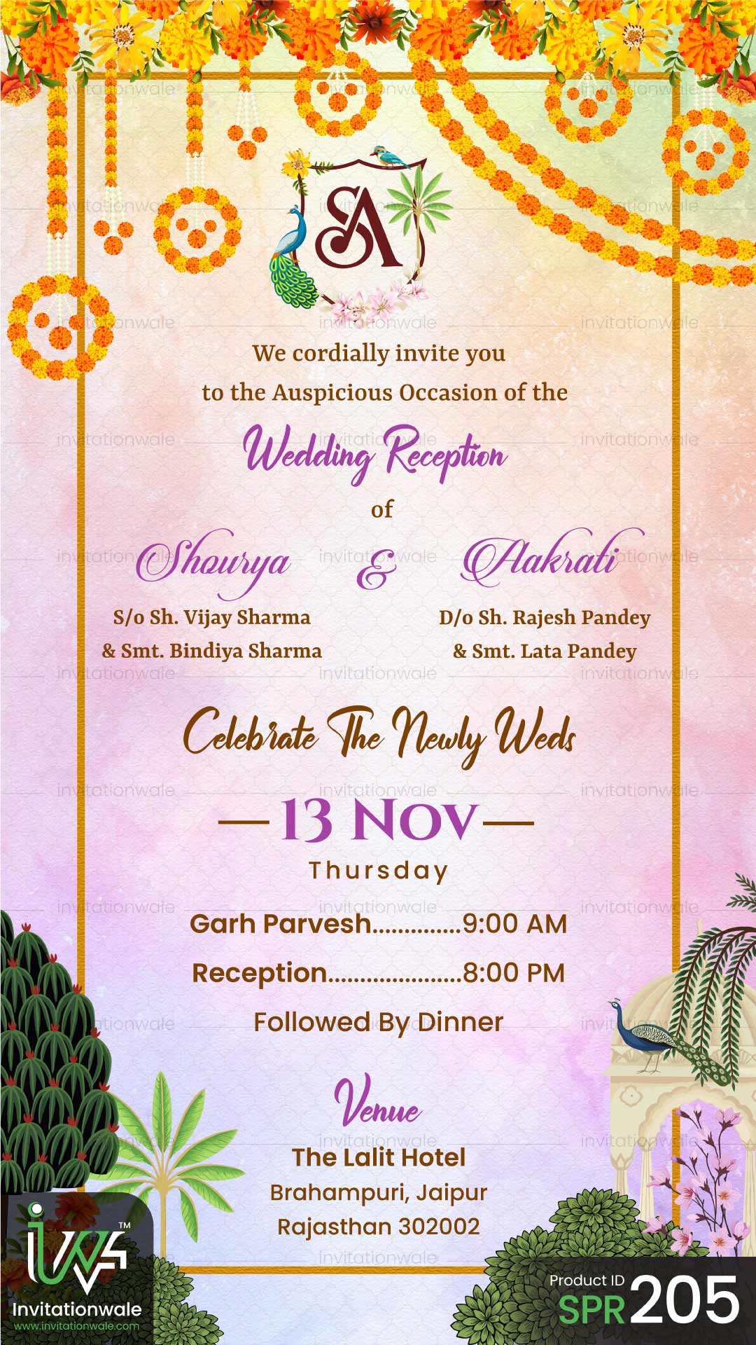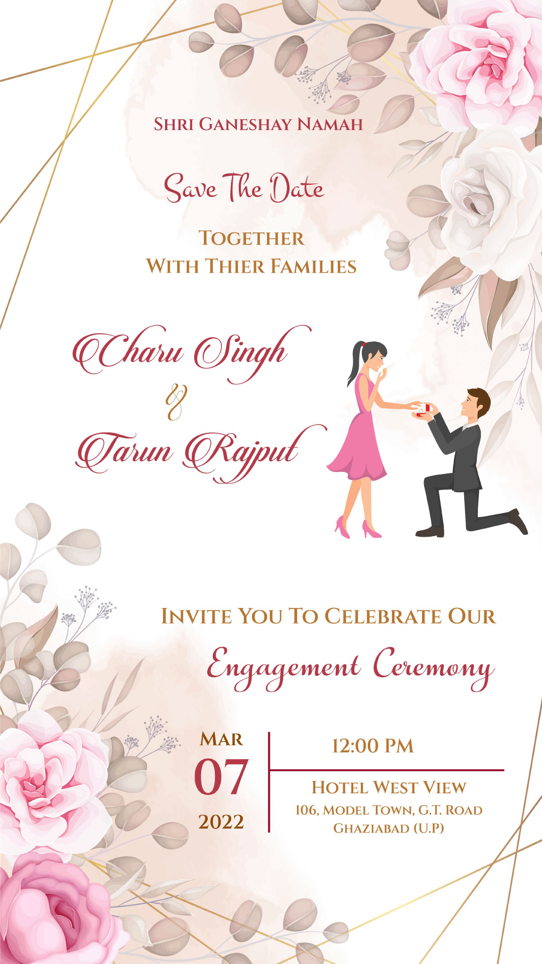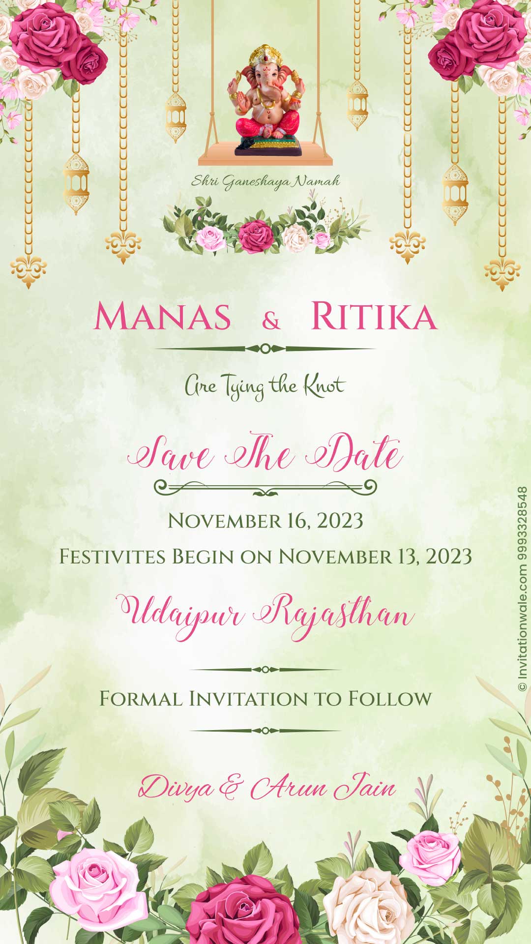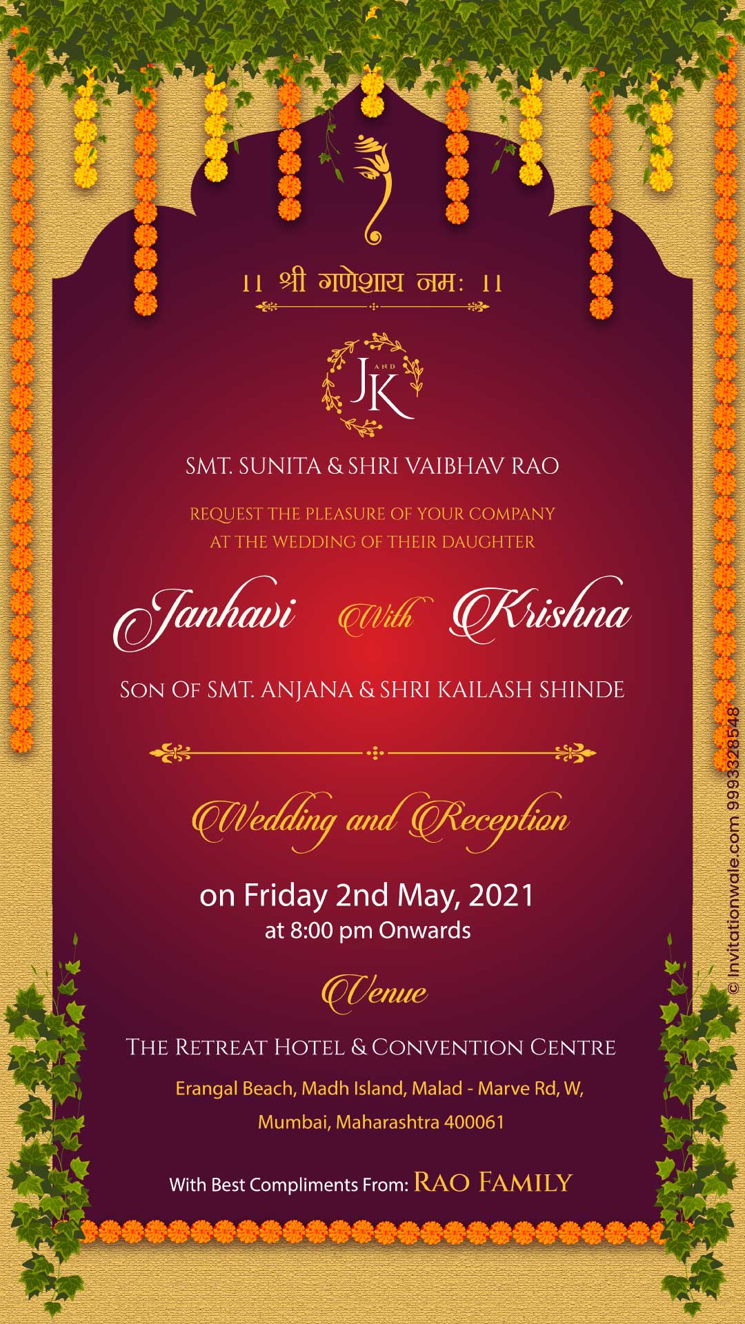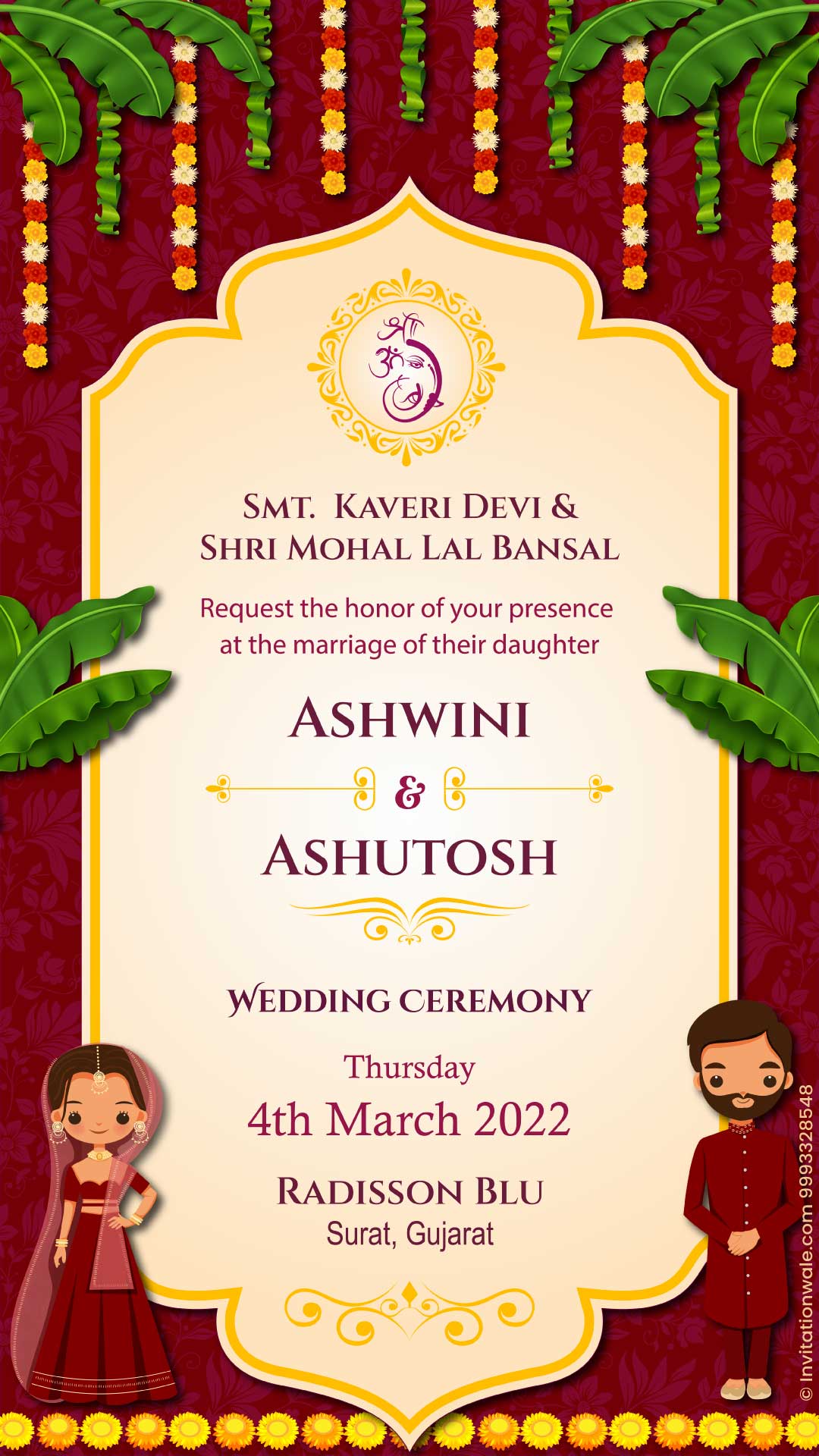 Create Personalized Indian/Hindu Invitation Video, All You Have To Do Is Choose A Card Design Template.And Your Program Details Like Wedding Date, Bride Name, Groom Name, Parents Name, Pre-Wedding Ceremony, Wedding Ceremony, Send Us Information On Whatsapp.