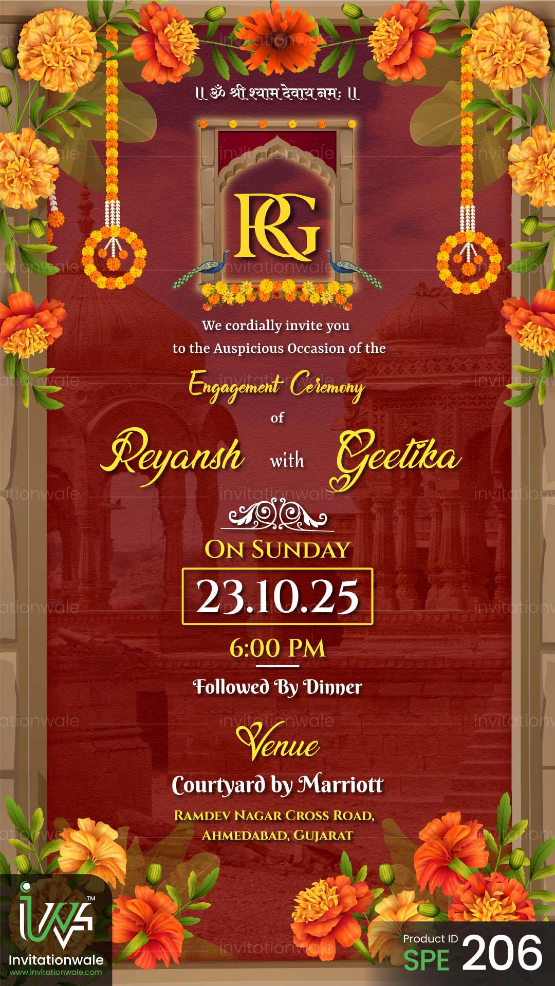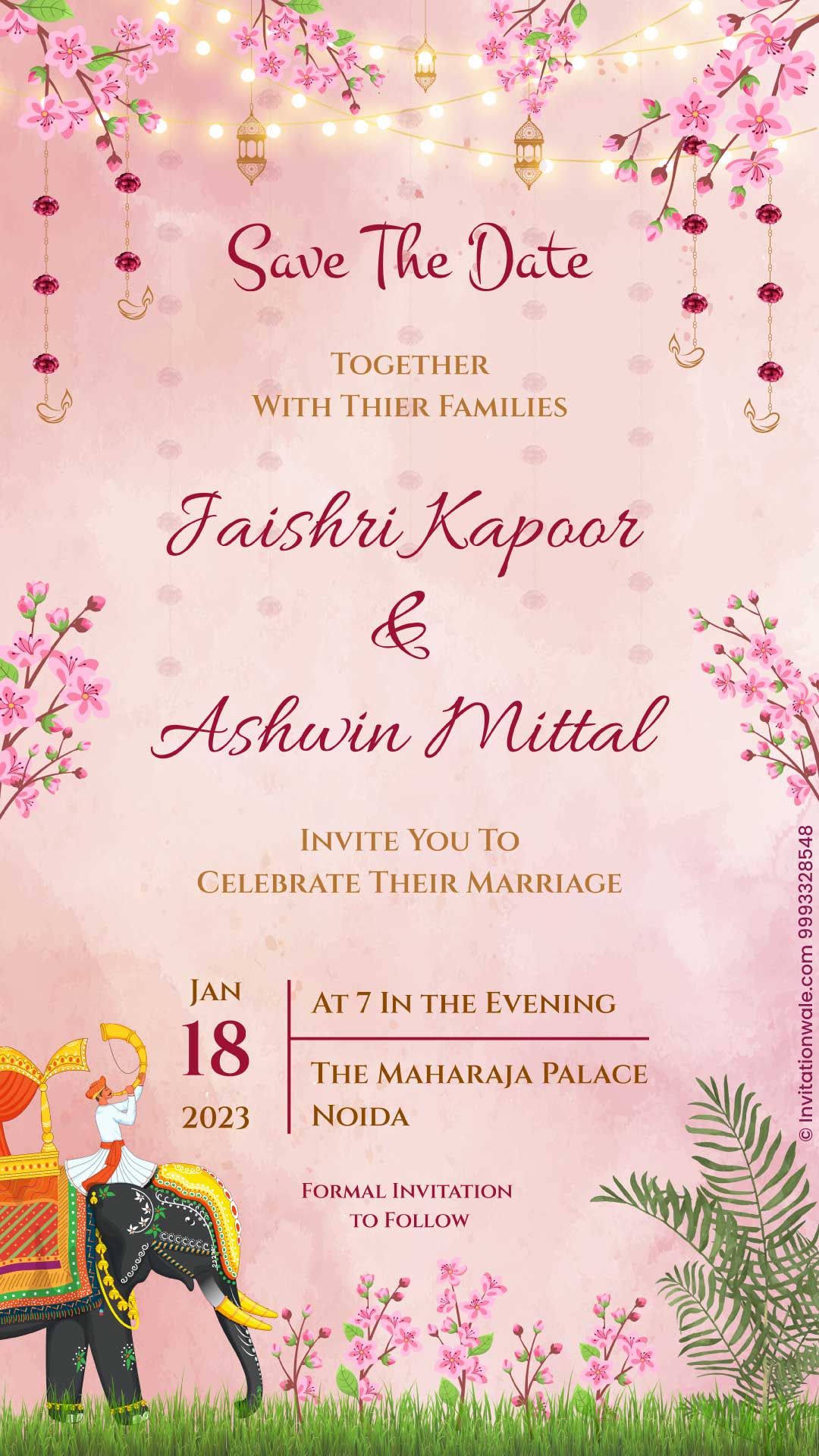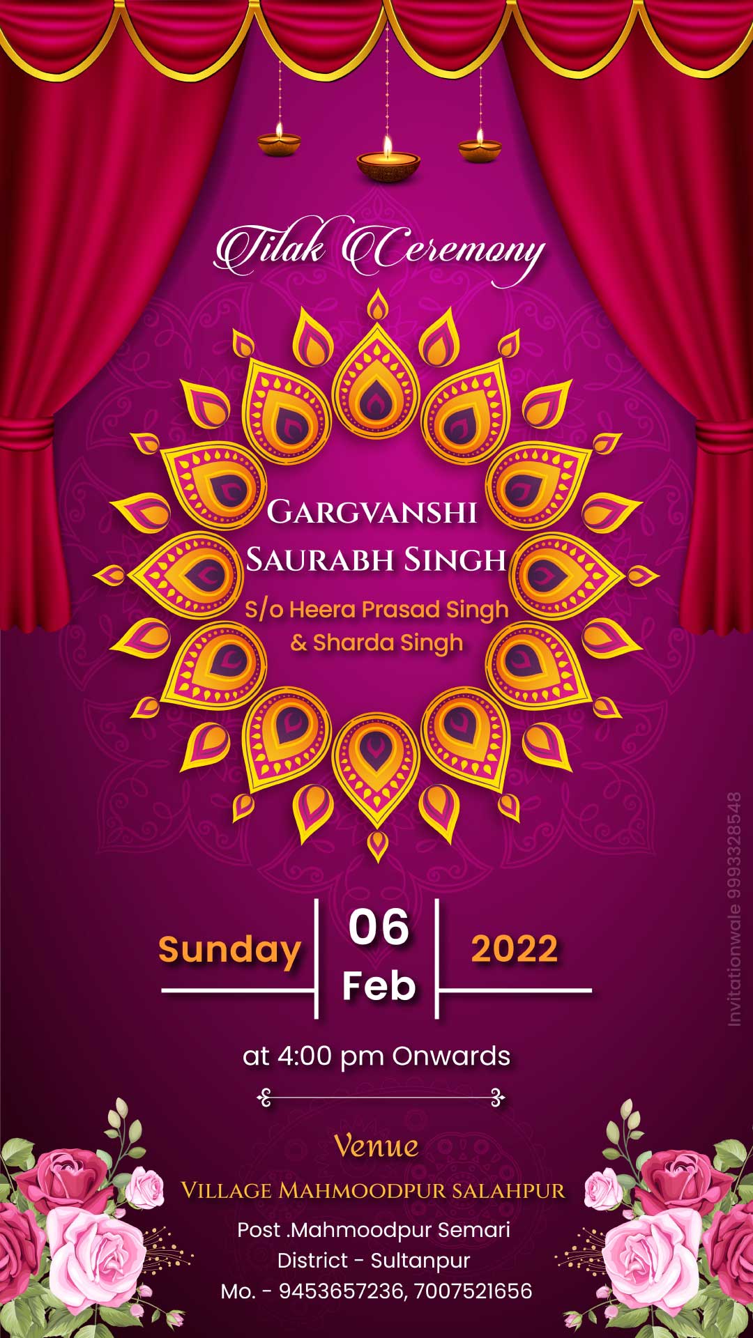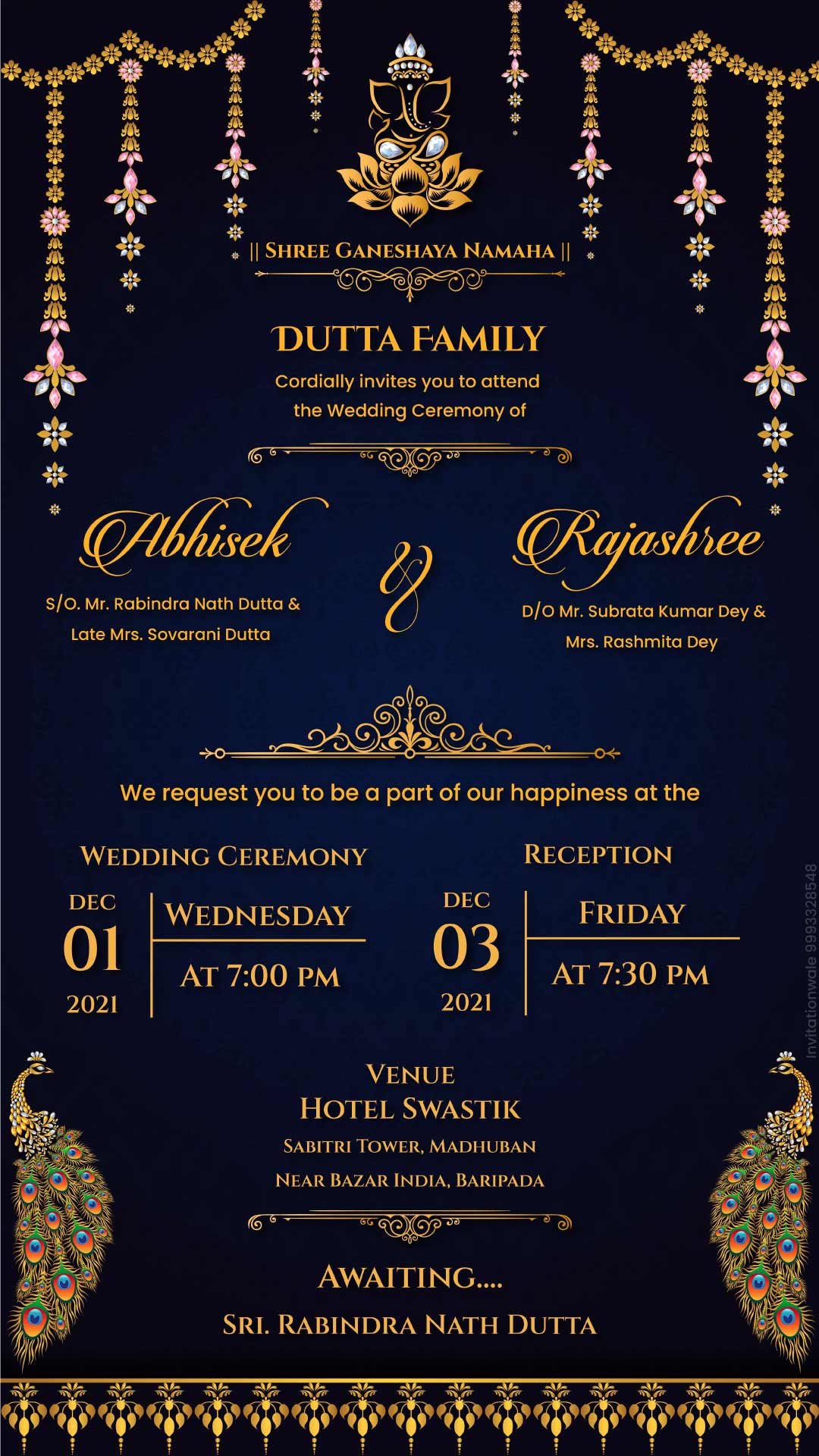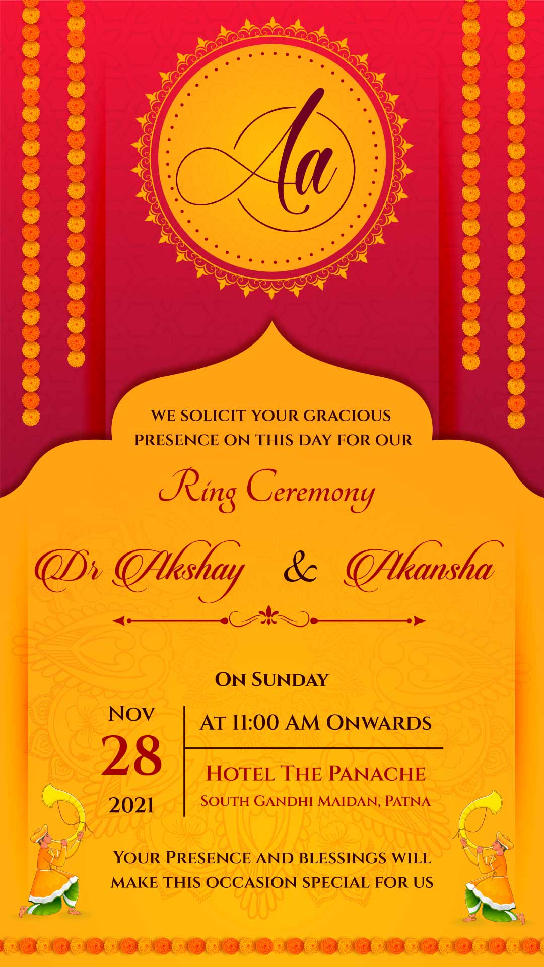 Create Personalized Indian/Hindu Invitation Video, All You Have To Do Is Choose A Card Design Template.And Your Program Details Like Wedding Date, Bride Name, Groom Name, Parents Name, Pre-Wedding Ceremony, Wedding Ceremony, Send Us Information On Whatsapp.