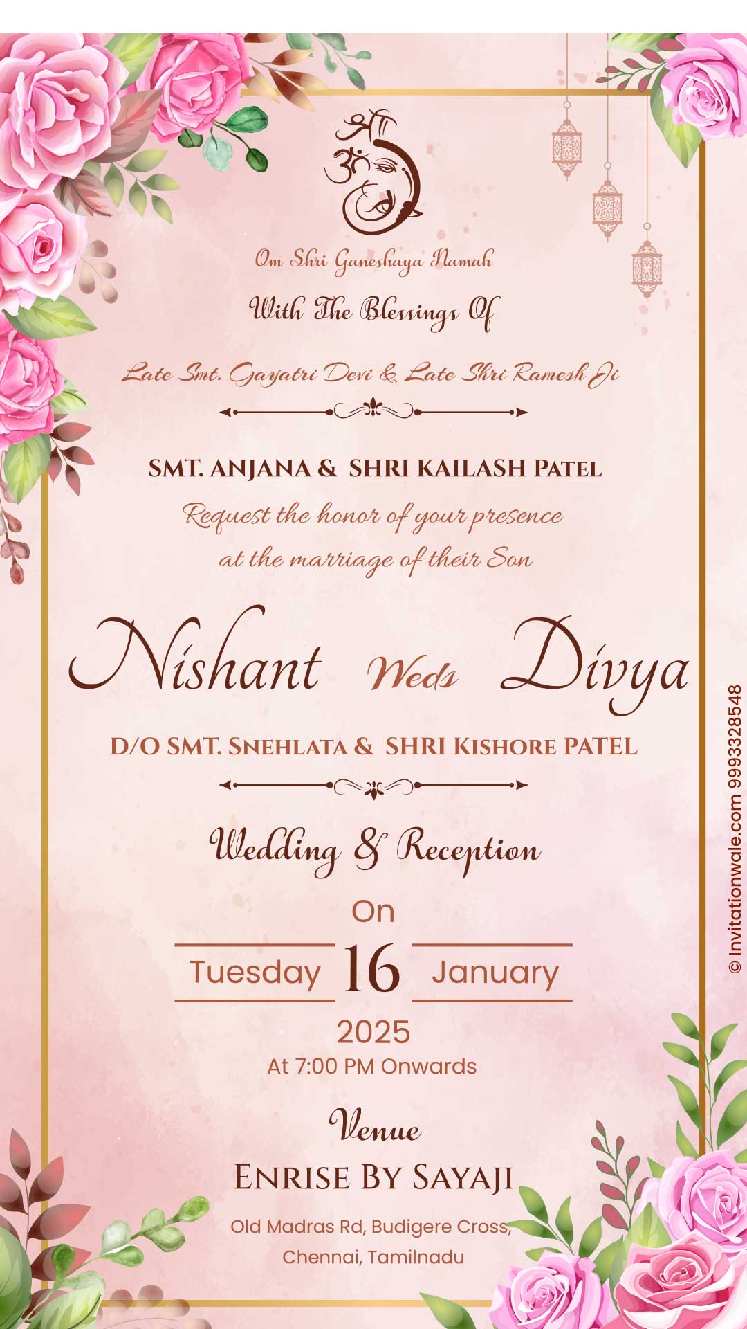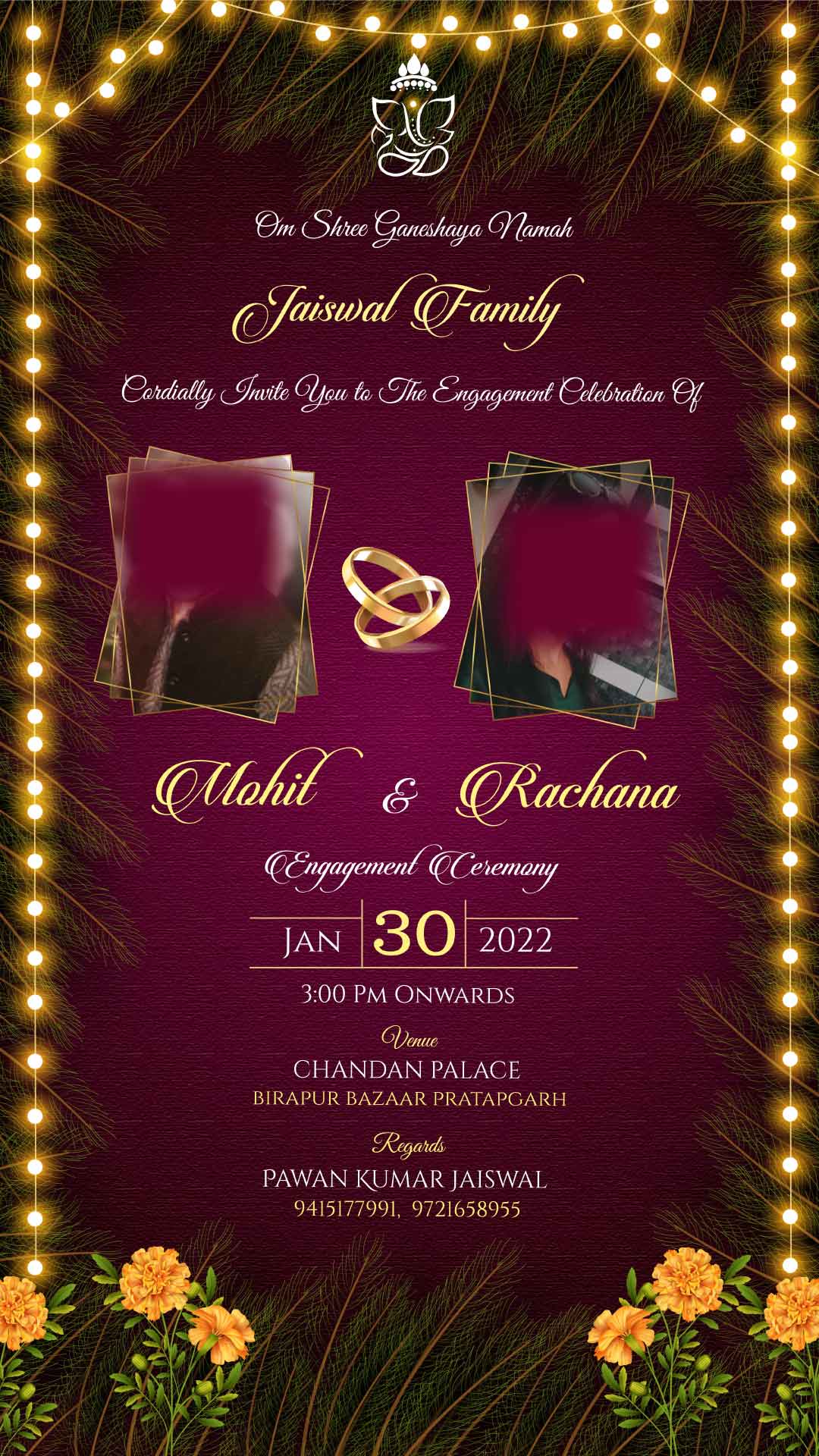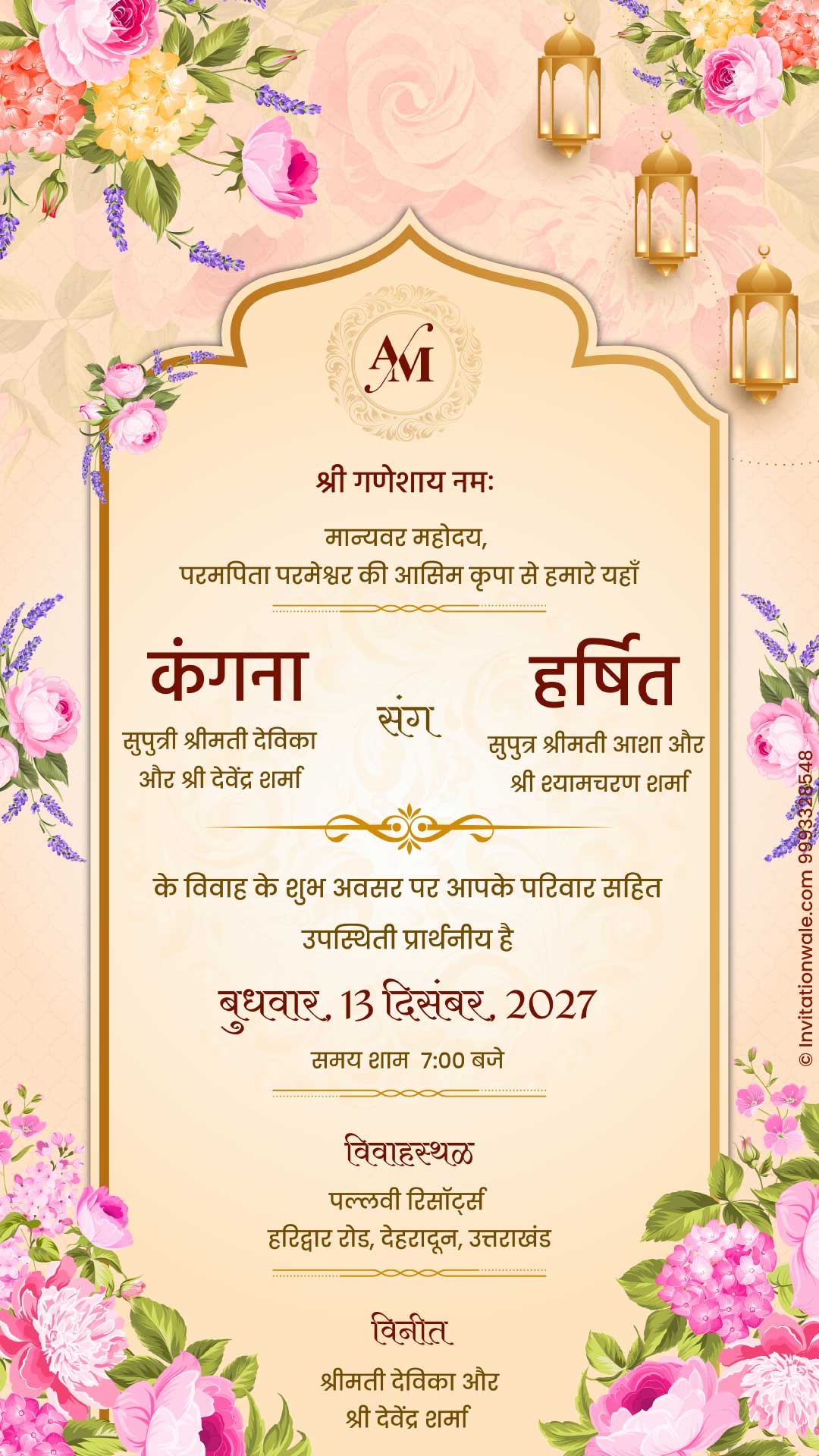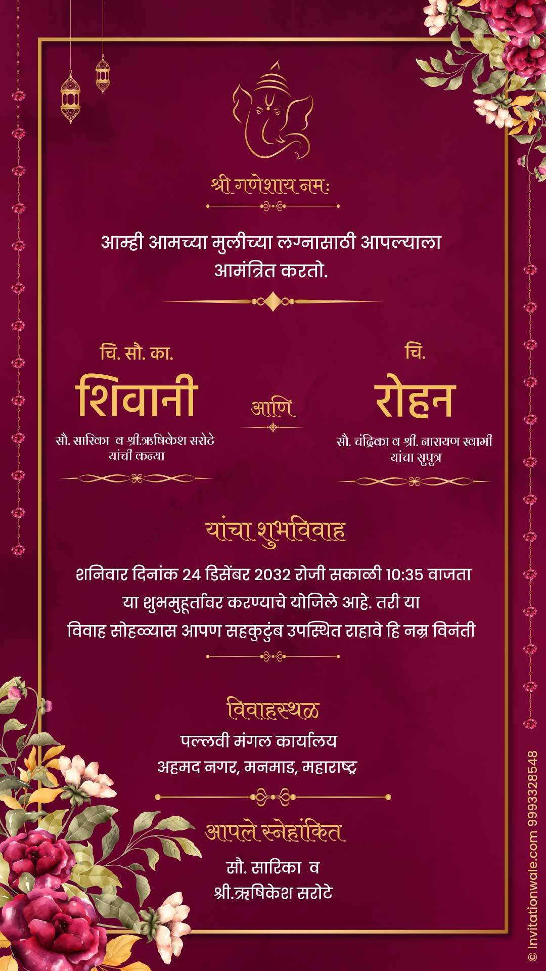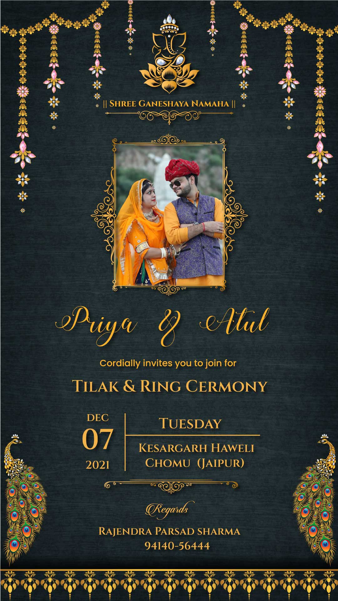 Create Personalized Indian/Hindu Invitation Video, All You Have To Do Is Choose A Card Design Template.And Your Program Details Like Wedding Date, Bride Name, Groom Name, Parents Name, Pre-Wedding Ceremony, Wedding Ceremony, Send Us Information On Whatsapp.