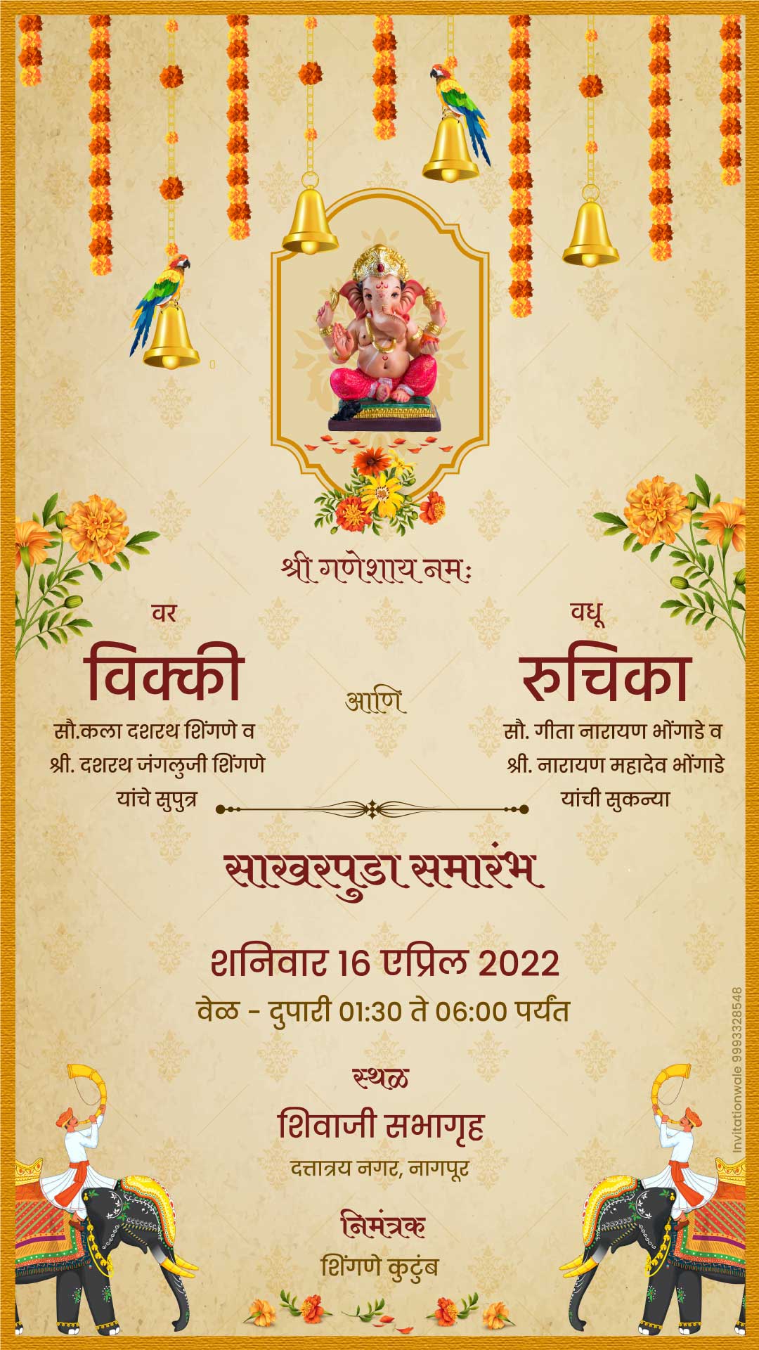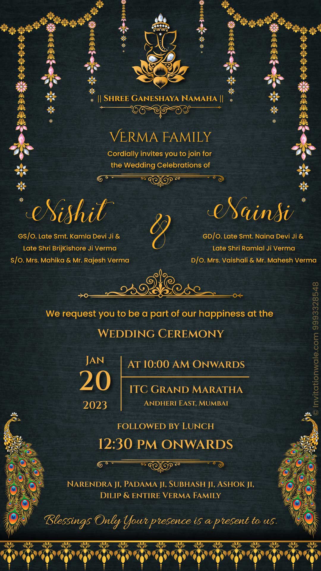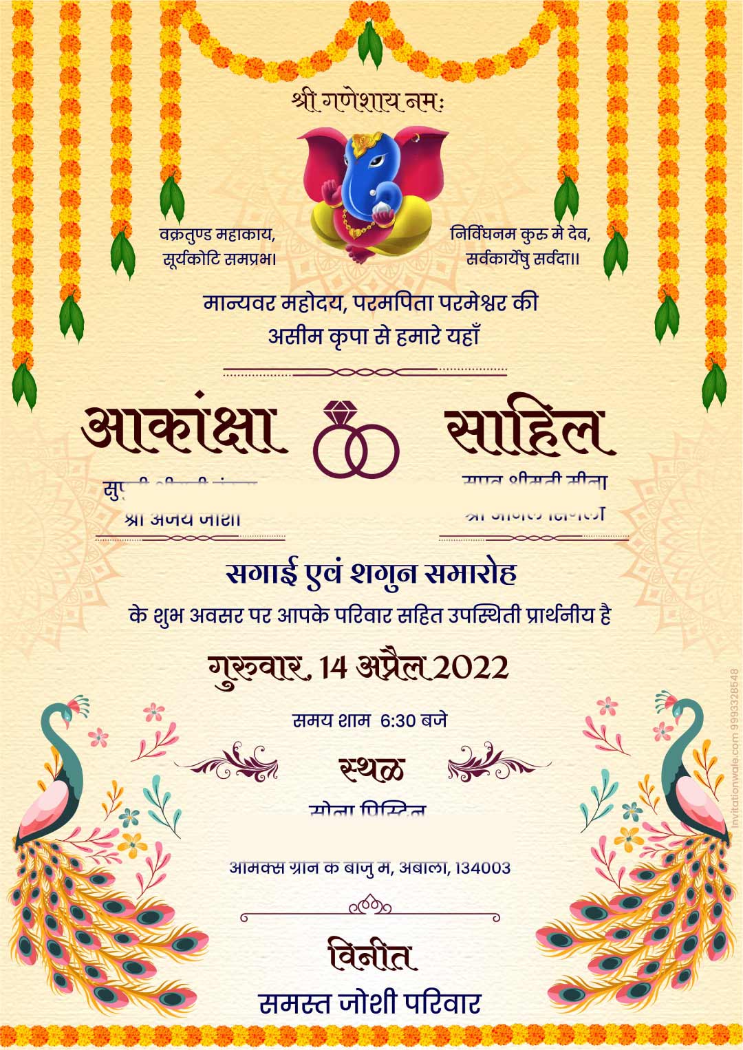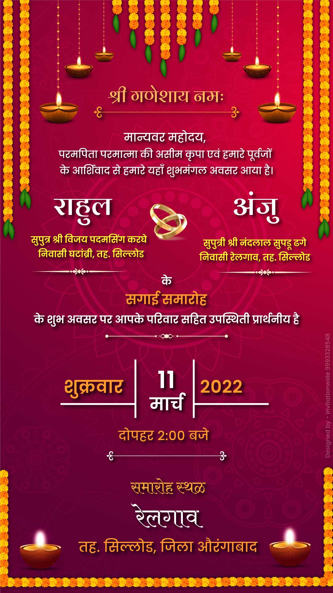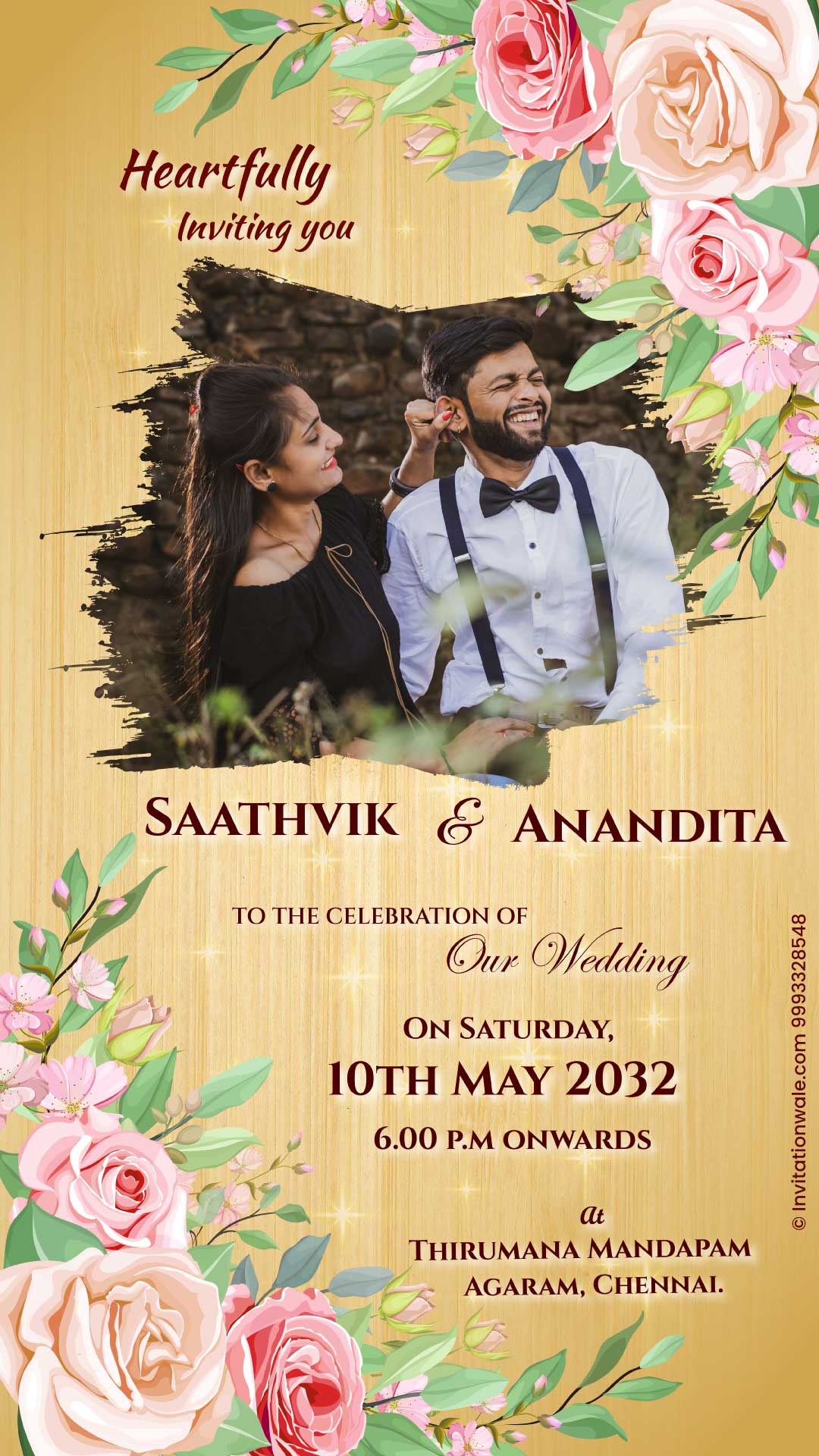 Create Personalized Indian/Hindu Invitation Video, All You Have To Do Is Choose A Card Design Template.And Your Program Details Like Wedding Date, Bride Name, Groom Name, Parents Name, Pre-Wedding Ceremony, Wedding Ceremony, Send Us Information On Whatsapp.