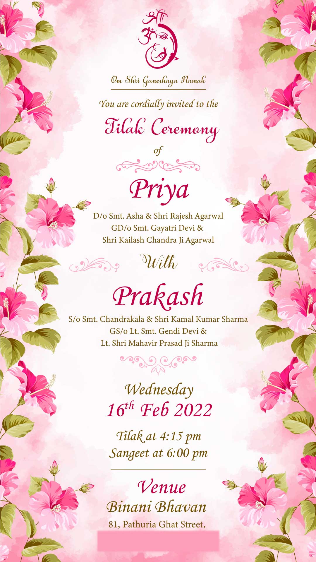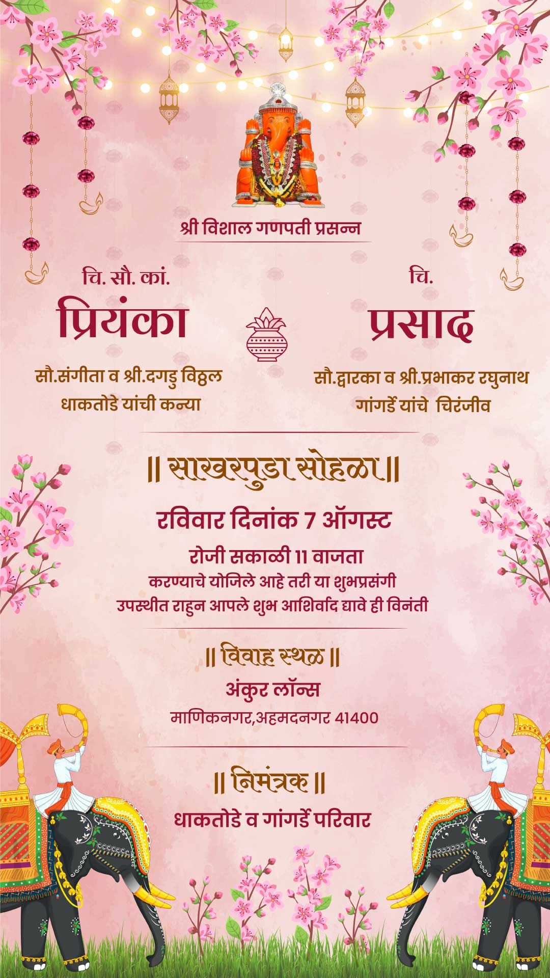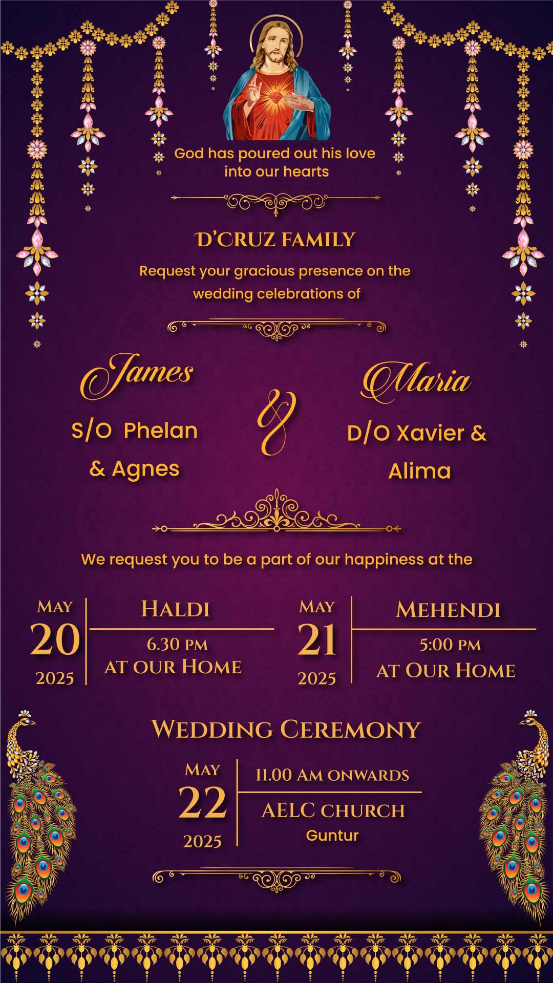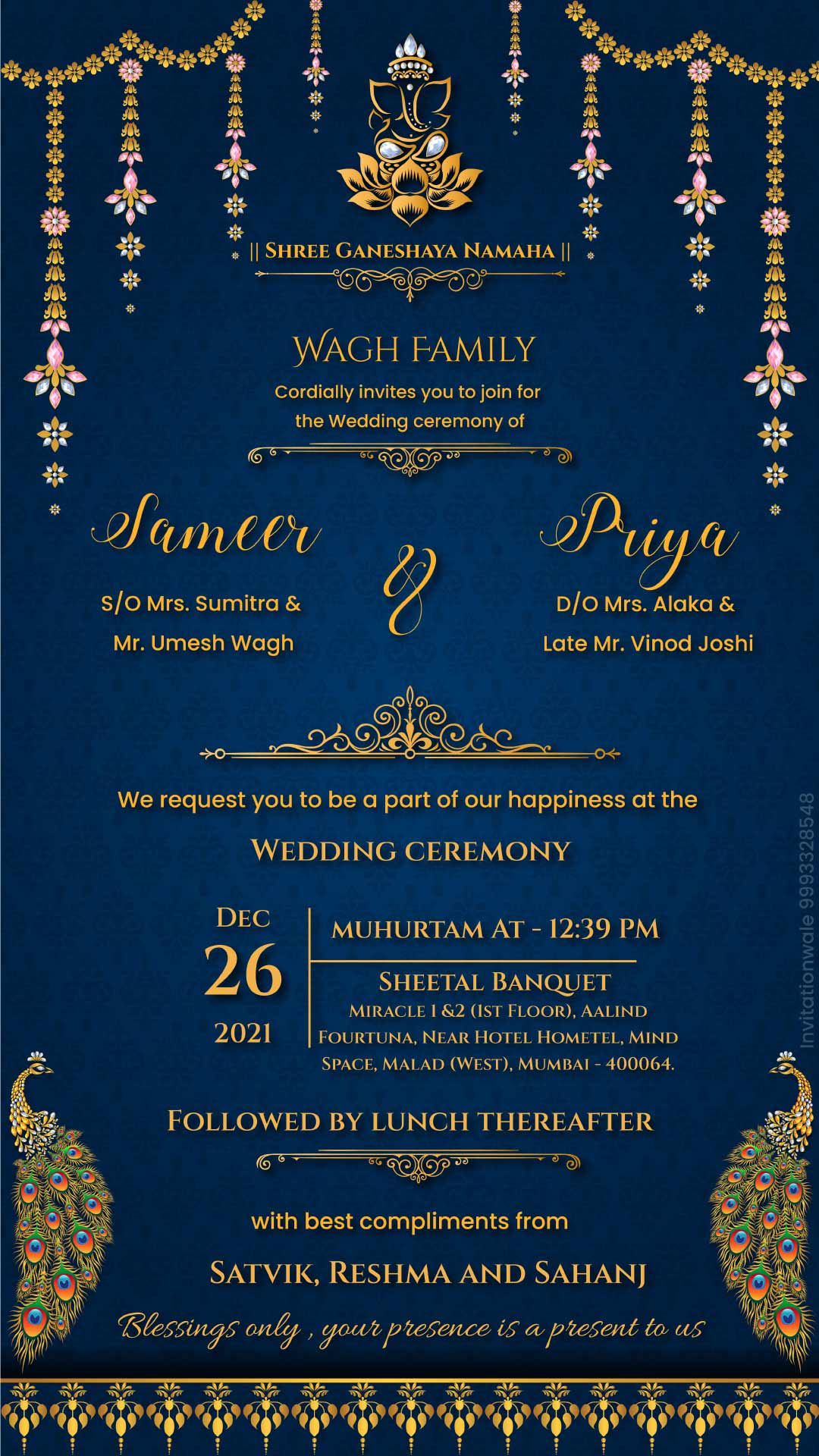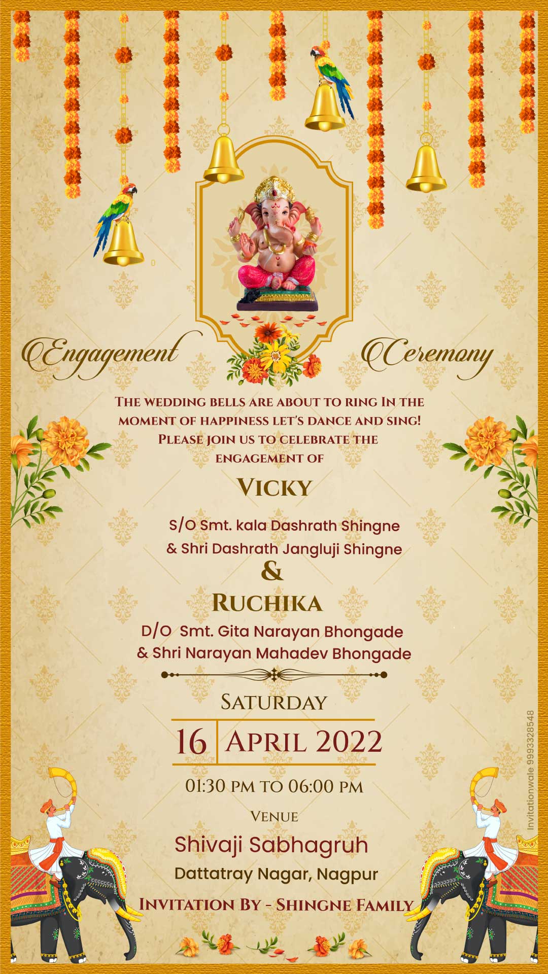 Create Personalized Indian/Hindu Invitation Video, All You Have To Do Is Choose A Card Design Template.And Your Program Details Like Wedding Date, Bride Name, Groom Name, Parents Name, Pre-Wedding Ceremony, Wedding Ceremony, Send Us Information On Whatsapp.